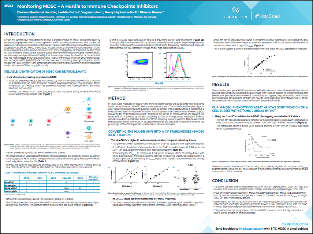 Monitoring MDSC – A Hurdle to Immune Checkpoints Inhibitors, SITC 2020